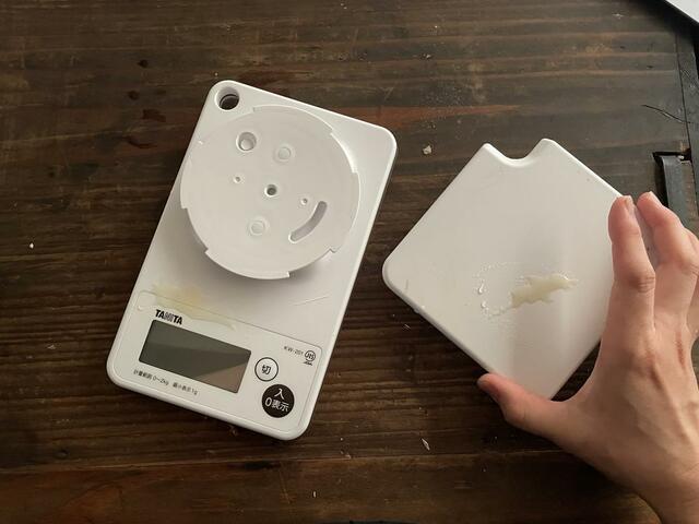 クッキングスケールって、汁をこぼしたり、隙間に粉が入り込みそうになったりと、実は使う度に壊してしまうんじゃないかとヒヤヒヤしちゃってます。今回も気づいたらはちみつが飛んでいました…。