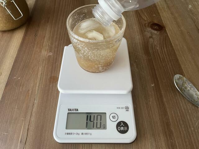 スケールを洗っている間に、シロップの煮込みが完了しました。粗熱を取って瓶に詰めたら、ジンジャーシロップの完成です。
