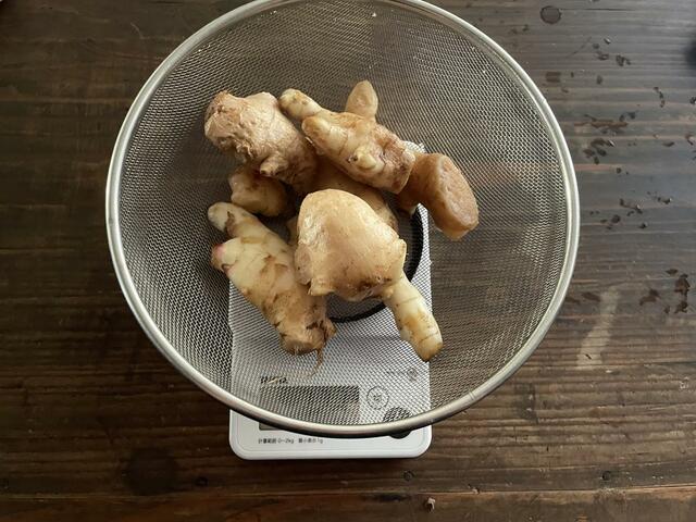 まずは、レシピ通り生姜をすりおろして…と、やりかけましたが、さっそくズボラセンサー発動。300gを全てすりおろすのはさすがに大変過ぎます。