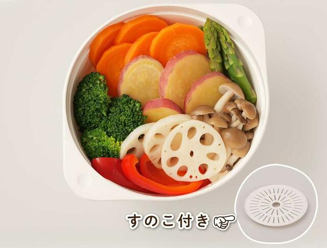 すのこ付きなので、水蒸気で加熱して温野菜も作れちゃいます。