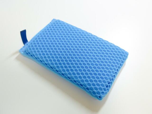 鮮やかなブルーが目を惹く、その名も「べっぴんさん 食器用ネットスポンジ」。