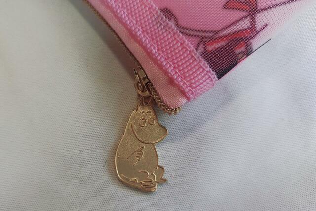 素材は本体がポリエステル、ファスナー引き手が亜鉛合金と鉄。引き手はいずれも「ゴールドのムーミン」で、とても可愛い仕上がりになっています。