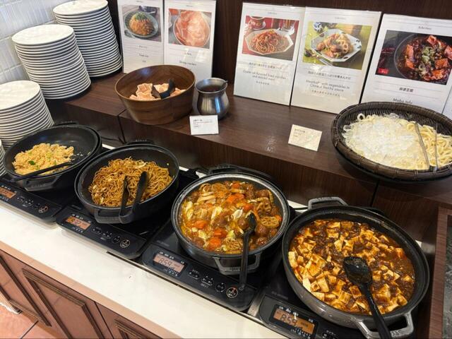 和洋中65品以上のブッフェに加え、ソフトクリームやクロッフルなどのセルフスイーツが楽しめます。