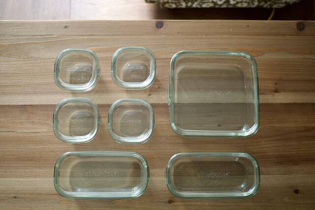 「パック&レンジ」には大小さまざまな形がありますが、今回は初導入ということでSS(200ml)×4つ、M(500ml)×2つ、L(1.2L)×1つが入った7点セットを選びました。