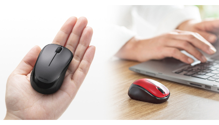 MA-BBS311は、指先にフィットするコンパクトサイズで狭いスペースでも使いやすく、リモートワークや車内でのPC作業などに適した、Bluetooth 5.1対応の2ボタン&ホイール搭載ワイヤレスマウス。