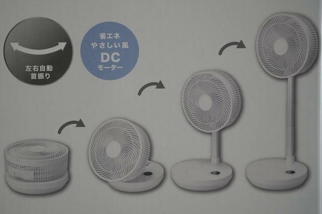そんなときおすすめしたいのが、ニトリや同系列のデコホームで売っている「DCタイプ 折りたためるコードレス扇風機」なんです。