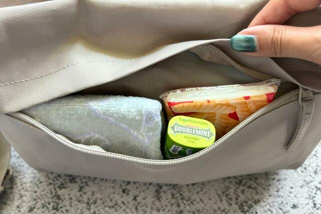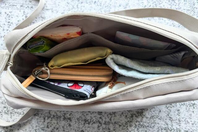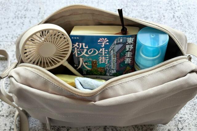 これに加えて、暑さ対策のミニ扇風機や日焼け止め、文庫本などもすっぽり。多少荷物が多い日でも頼れるサイズ感です。