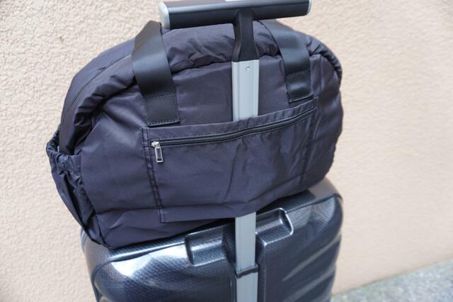 バッグ自体が軽いのも特長のひとつ。重さは約440gで、飛行機や電車内でバッグを上げ下げするのもラクにできます。