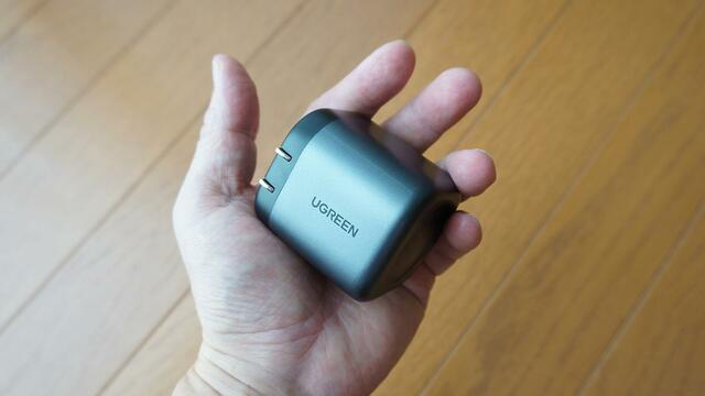 高性能なGaN充電器なので、重量感こそそれなりにズッシリとした印象ですが、本体サイズは53×53×50.4mmという超小型設計。バッグのポケットなどにムリなく収納しておけます。