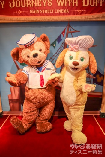 「メインストリート・シネマ:マイ・ジャーニー・ウィズ・ダッフィー」にて、ダッフィーとクッキーのキャラクターグリーティングが行われています。