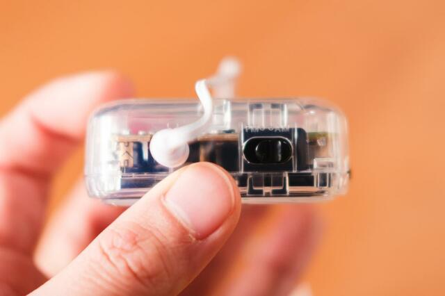 本体左側にあるダイヤルをカチッと回すと電源のオンオフ。