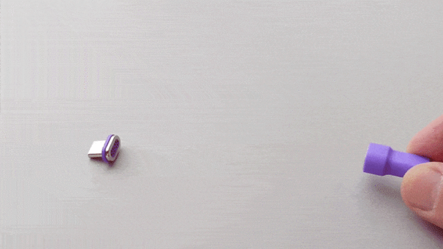 挿し口に狙いを定めなくても、近づけるだけで磁石が吸着。自動でカチッと繋がるので、片手でも、手元を見なくても、充電がスタートできてしまいます!