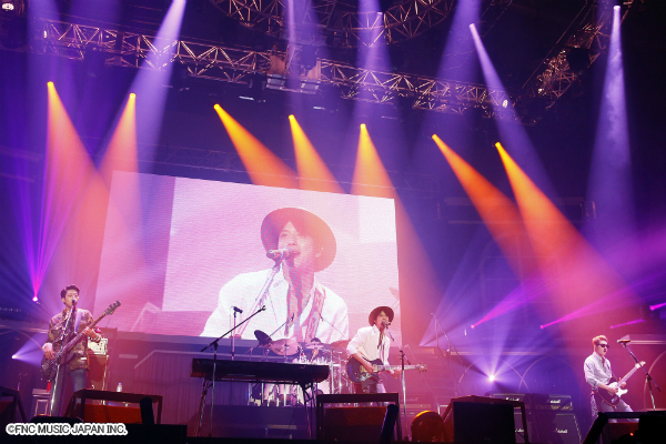 ラストを飾るのは、今回のKINGDOMの目玉企画ともいえるグループ完全シャッフルバンド。昼公演にはCNBLUEのヨンファとFTISLANDのジョンフン率いるハードロック・バンド“もちもち”が登場し、FTISLAND、CNBLUE、AOAの代表曲のマッシュアップ(ふたつ以上の曲をMIXしてひとつの楽曲にする)で盛り上げた。一方、夜公演にはFTISLANDのホンギとジェジン、そしてCNBLUEのジョンヒョン率いる“さすらいバンド”が登場。チョア(AOA)、スンヒョプ(N.Flying)、チャ・フン(N.Flying)、ミンファン(FTISLAND)、ジョンシン(CNBLUE)、JUNIELという豪華メンバーで「ショートヘア~願う~I Wish」というAOA、FTISLANDのヒット曲をメドレーで歌うと会場中が大合唱。なんと、前日の夜に急きょリーダーに指名されたホンギが巧みに話すバンド結成秘話にはCNBLUEのジョンヒョンも思わず感心し、その様がファンの笑いを誘った。