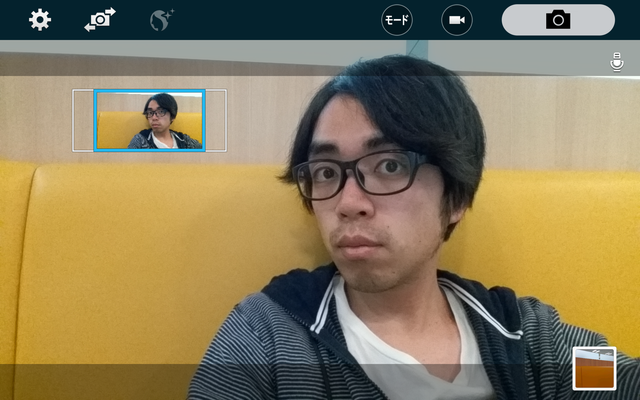 最近話題になっているセルフィ(自撮り)に関するカメラ機能も強化されています。GALAXY Note Edgeではインカメラを使ったセルフィモードに「ワイド自分撮り」機能を追加。これは、最大広角120°で自分だけでなく周囲の人も入れて自撮りが行える機能です。