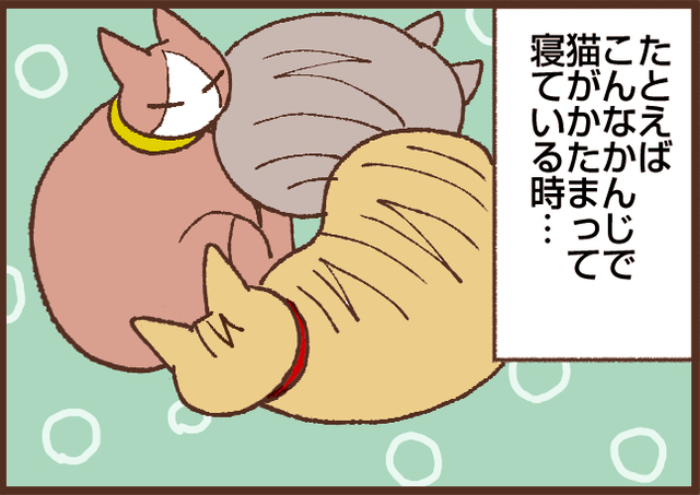 さすがに5匹いっぺんにだんごになってることはほぼないので、2~3匹という感じですが、猫の組み合わせが違うだけでもなかなか違う感触があって面白いです。