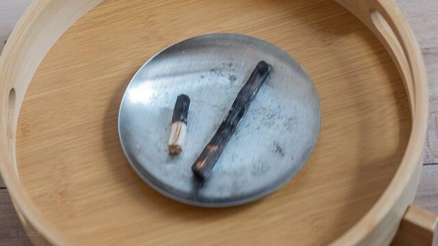 火をつけると黒くなり、次第に火がつきにくくなります。