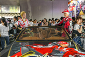 また企業ブースでは、公式の痛車に乗り込んだギルガメッシュとエミヤがお出迎え。カッコいいコスプレ姿に、女性ファンを中心に撮影する方が多くいらっしゃいました。