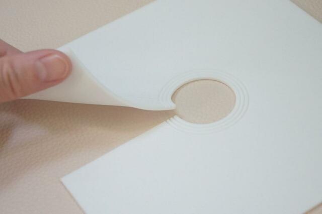 自宅の排水ホースの大きさに合わせて、中央にある穴をハサミで切って、大きさを変えて使うのですが、1.5mmおきくらいにガイドラインが掘ってあるので切りやすい〜。