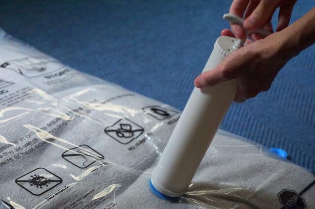 ハンドポンプでも空気が抜ける、真空圧縮袋