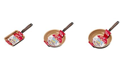 価格は、「金のゴリラのひと磨き 玉子焼き13×18cm」が3058円、「金のゴリラのひと磨き フライパン」の20cmモデルが3058円、26cmモデルが3278円、28cmモデルが3608円、「金のゴリラのひと磨き 深型フライパン」の24cm深型モデルが3278円、28cm深型モデルが3828円。