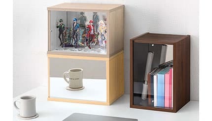 「オタバレ防止コレクションケース」は、幅34×高さ24×奥行き22cmとコンパクトサイズなため、大型コレクションケースの設置が難しい部屋や、ラック上やデスクの一角でも、埃から守りつつ「推し」を飾れる。