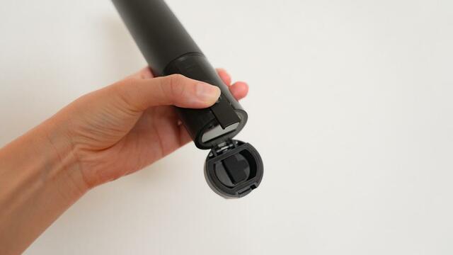 本体中央部分にあるボタンを押せば、ワンタッチでゴミを捨てられます。