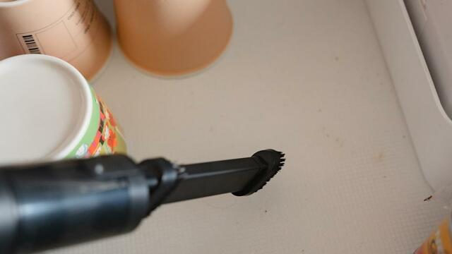 野菜室にたまったゴミも、長めのノズルでしっかり吸い取り可能。