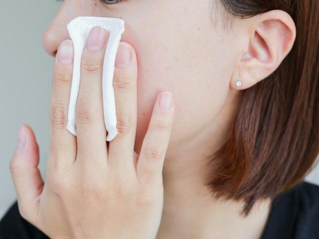 朝晩2回のお手入れで、顎や小鼻などザラつきの気になるところは丁寧めに拭き取り。