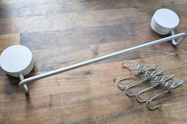 取り入れたい!と思いつつも、自宅の浴室や洗面台周辺はマグネットがつくタイプではなく、ちょうどいいポールなどもありません。
