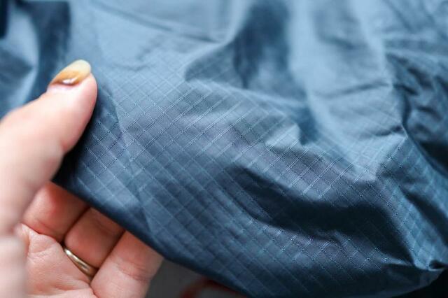 強度と軽量性を兼ね備えたモンベルオリジナルのナイロンで、紡糸の段階でナイロン糸に延伸加工を施し、強度を持たせているのだそう。