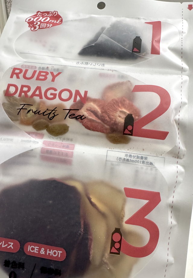使われているフルーツはドラゴンフルーツ、梨、りんご、レーズン、金柑、いちご。