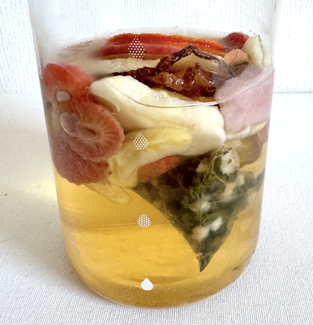 一番下にティーパック、その上には水に浮いてしまう小ぶりなフルーツで、ラストに蓋になるような大きめのフルーツを入れていきます。