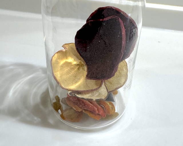 試しに水出ししたあとの果物を食べてみましたが、問題なく食べられました(味は、だしを取ったあとの鰹節みたいな感じなので、オススメはしません)。