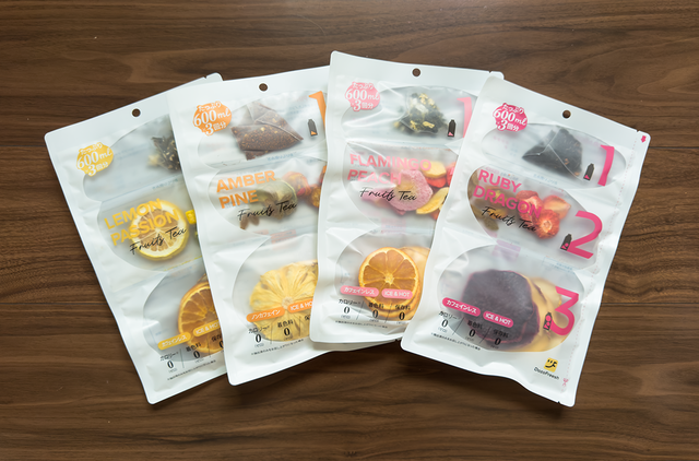 このフルーツティーは、どのフレーバーも数種のフルーツが使われていて、その甘みや風味を楽しむことができます。