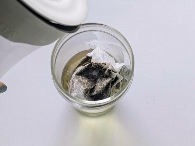 コーヒーバッグ1袋につき500mlの水が目安。今回は、お気に入りの容器にコーヒーバッグを2袋入れてつくりました。