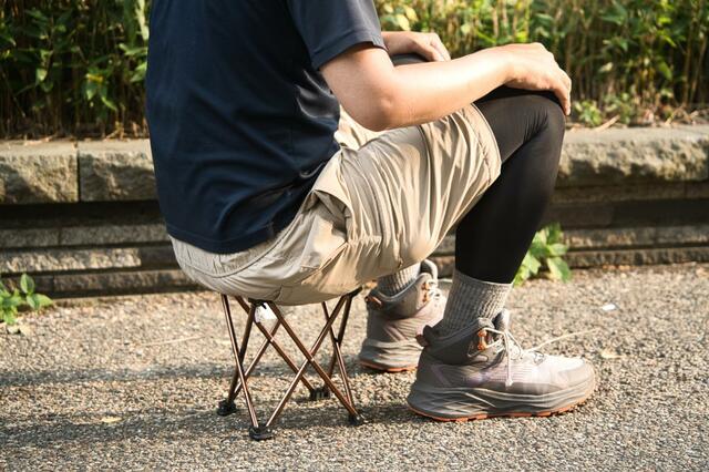 折りたたみチェアの中でも最軽量クラスの340gで、片手でさっと畳めて携帯できるのが魅力。