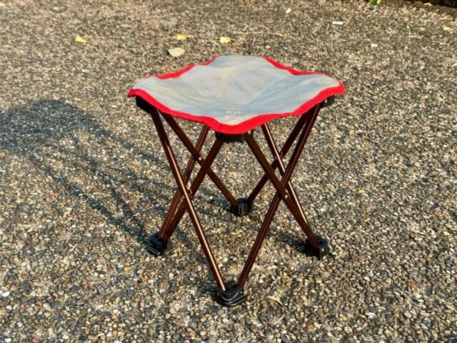 布地の座面にアルミの支柱だけのシンプルな構造でありながら、なかなかしっかりとしていて、問題なく椅子として座れます。