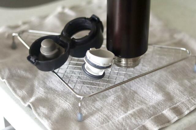 これまで、洗った水筒はキッチンタオルの上に直接置いてたので乾きにくかったんですが、このラックを使うようになって乾くのが早くなったのを感じています。