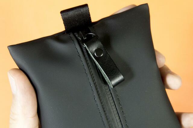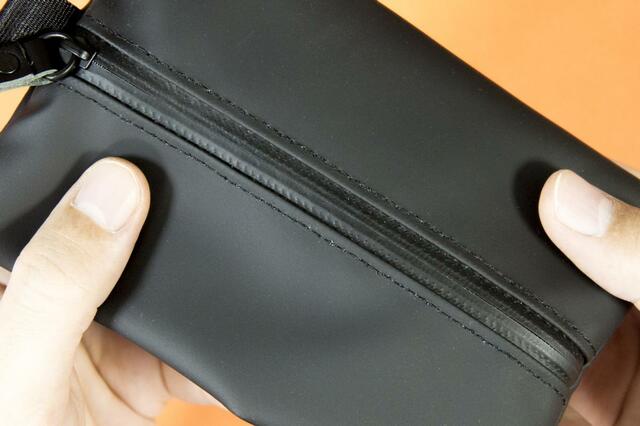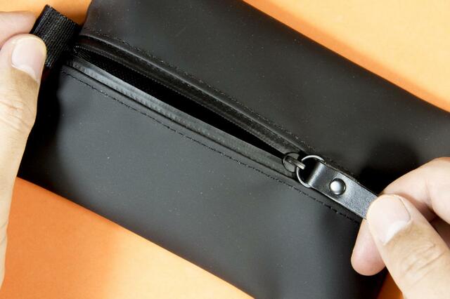 ファスナーも止水仕様なので、多少水がかかったぐらいでは中に入れた物が濡れてしまうこともなさそうですね。