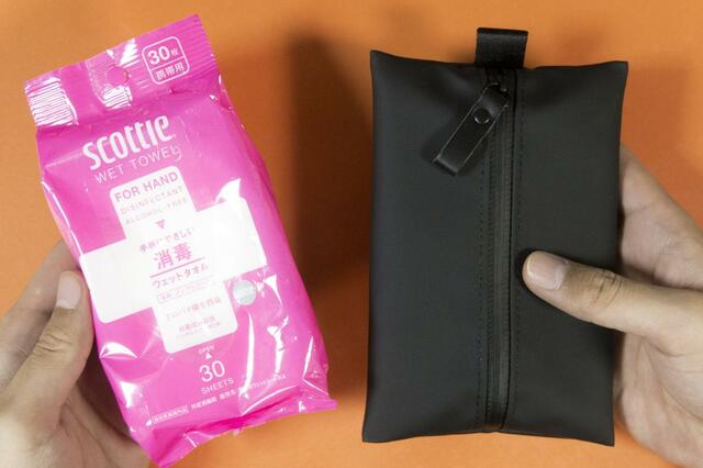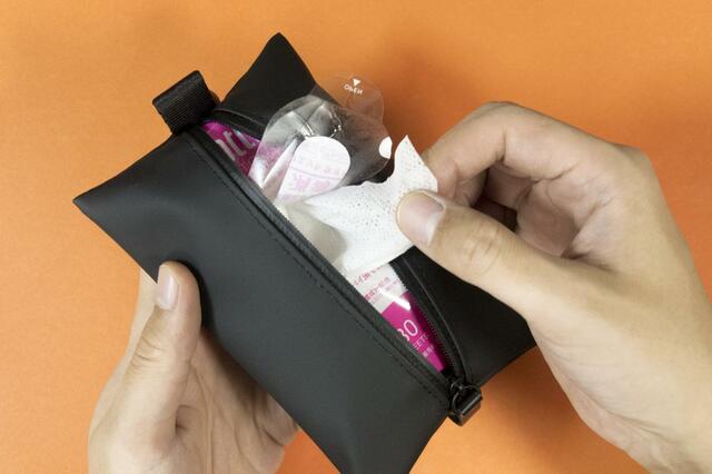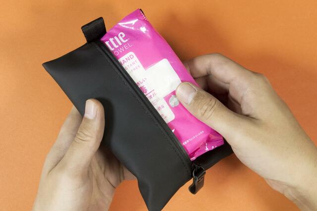 ポーチ自体の気密性が高いので、ウェットティッシュのような乾燥しやすいものでも安心して持ち運べますよ。