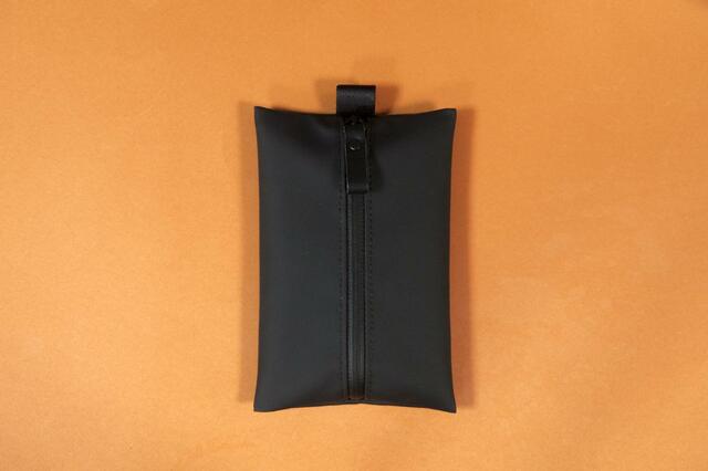 ウェットスーツのような質感のポーチ