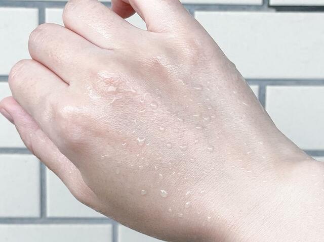 しっかり伸ばしきると透明に。肌にピタッと密着する感覚がありますが、まったくベタつきません。