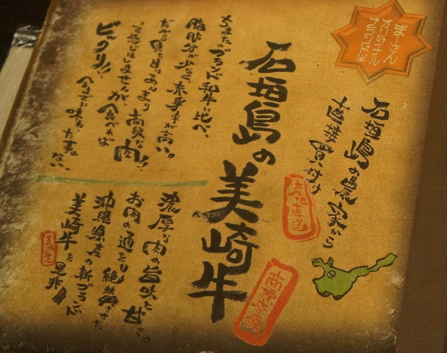 石垣牛を扱っているだけあって、島らっきょうなど沖縄の食材を使った料理やお酒が楽しめるこちらのお店。肉好きなら、迷わず人気メニューの「石垣牛ま〜さんハンバーグ」と「石垣牛サーロインステーキ」をオーダー!