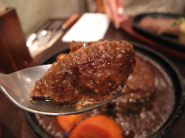 石垣牛ハンバーグは、やわらかすぎるのでスプーンで!