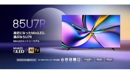ハイセンスジャパンは8月下旬に、MiniLED×量子ドットを搭載した4K対応液晶テレビ「U7R」シリーズの新機種として、85V型モデル「85U7R」を発売する。
