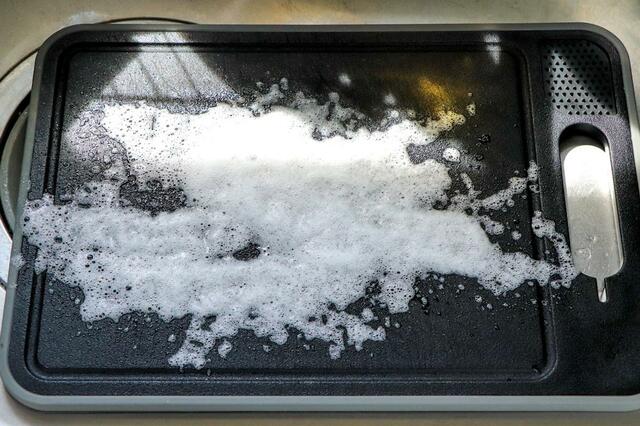 両面を一度に満遍なく漂白できたおかげで、まな板はすっかりキレイに!