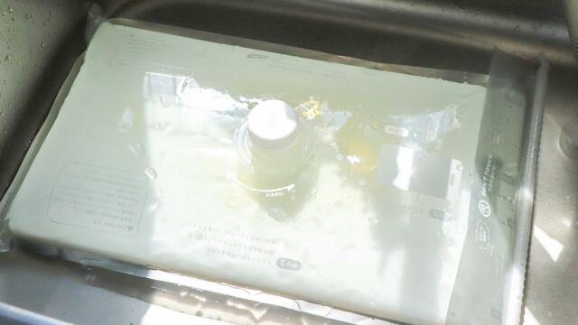 空気をしっかり抜けるので、少ない水の量でも浮いてくることなく漂白できます。