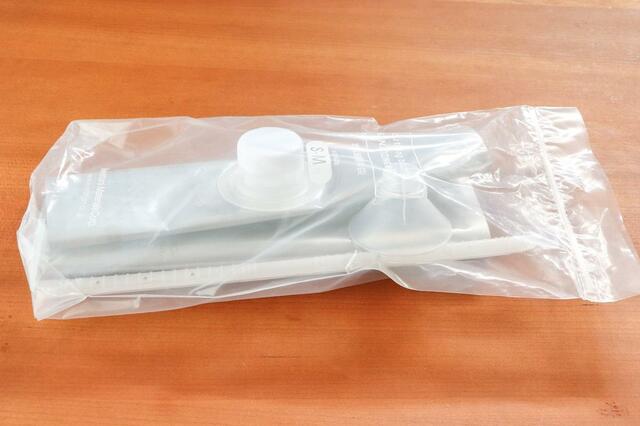 セットになっているのは、本体である袋とじょうご、袋を留めるためのエニーロックという留め具の3つです。