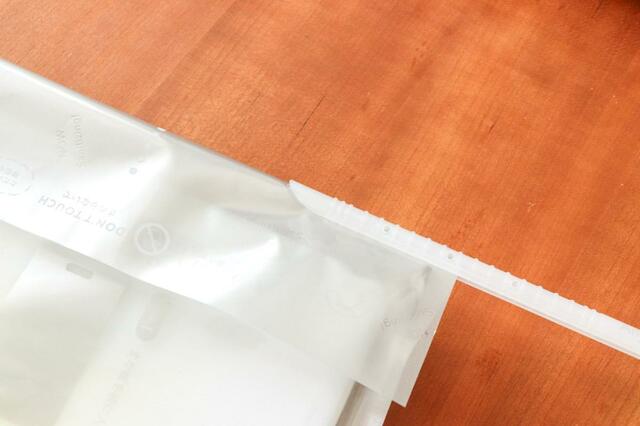 まずまな板を袋に入れて、留め具で袋の端を閉じます。