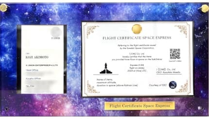 「名刺宇宙旅行」は、応募者の名刺を、地球上空約250~500kmの宇宙空間へロケットで打ち上げ、無重力を体験したのち、地球へ帰還させるサービス。24年11月には、名刺や企業ロゴを搭載した「第1回 名刺宇宙旅行」プロジェクトを実施し、地球上空約256kmの宇宙空間に名刺を打ち上げることに成功。無重力空間を旅した名刺は帰還後、証明書とともに額装して参加者のもとへ届けられ、大きな反響を呼んだ。